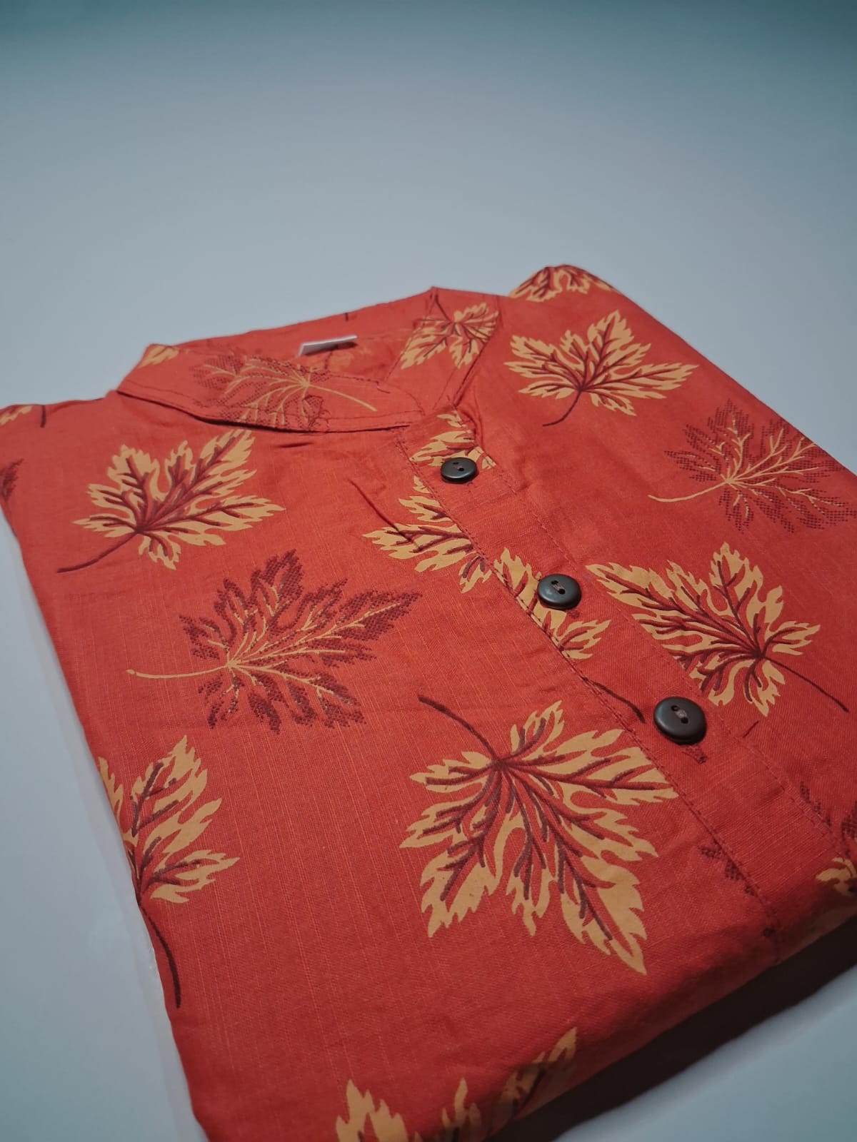সফট কোরাল শেডের ওপর চমৎকার লাল ও গোলাপি ফ্লোরাল মোটিফ প্রিন্টে তৈরি এই প্রিমিয়াম কটন কুর্তিটি আপনার ফ্যাশনে যোগ করবে স্নিগ্ধ আভিজাত্য। কুর্তিটির মান্দারিন কলার এবং সামনের বোতামের নিখুঁত কাজ এটিকে দিয়েছে একটি আধুনিক ও মার্জিত লুক। ১০০% হাই-কোয়ালিটি আরামদায়ক সুতি কাপড়ে তৈরি এই কুর্তিটি অফিস, ইউনিভার্সিটি বা ক্যাজুয়াল গেট-টুগেদারে দিনভর ফ্রেশ থাকার জন্য একদম সেরা পছন্দ। সাদা বা অফ-হোয়াইট প্যান্টের সাথে এটি দারুণ মানিয়ে যায়।